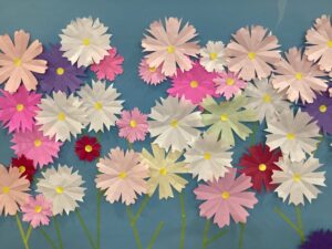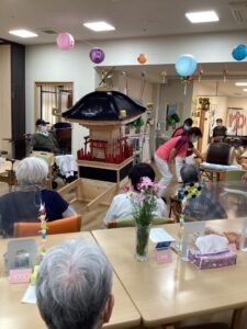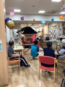 秋祭りと秋桜 秋祭りと秋桜 2025年9月29日未分類kunpu-en やっと秋らしく過ごしやすい気候になってきましたね🍂 薫楓苑デイケアでは秋祭りとして、お神輿やベビーカステラなどで、お祭り気分を楽しんで頂きました。 フロアでは秋を感じて頂けるよう、コスモスの制作物を飾っています。