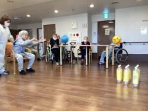 利用者様で円になって何回羽根つきが続くかチャレンジ!!
