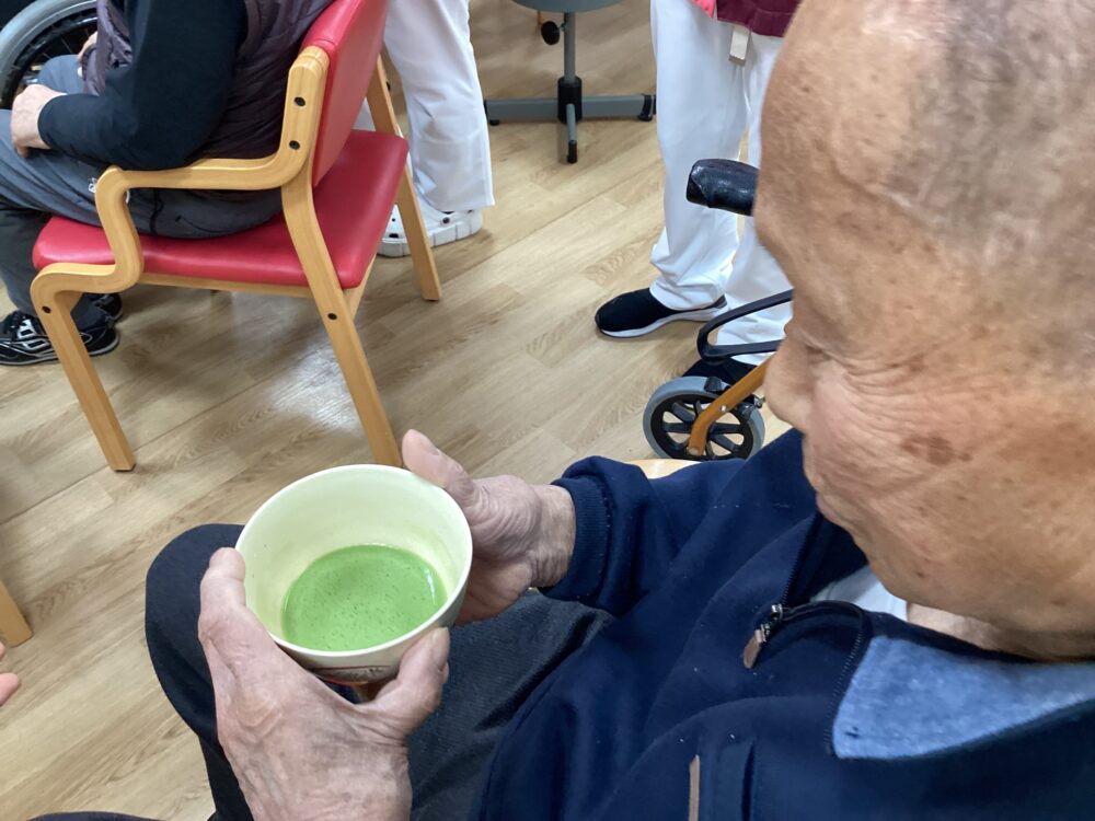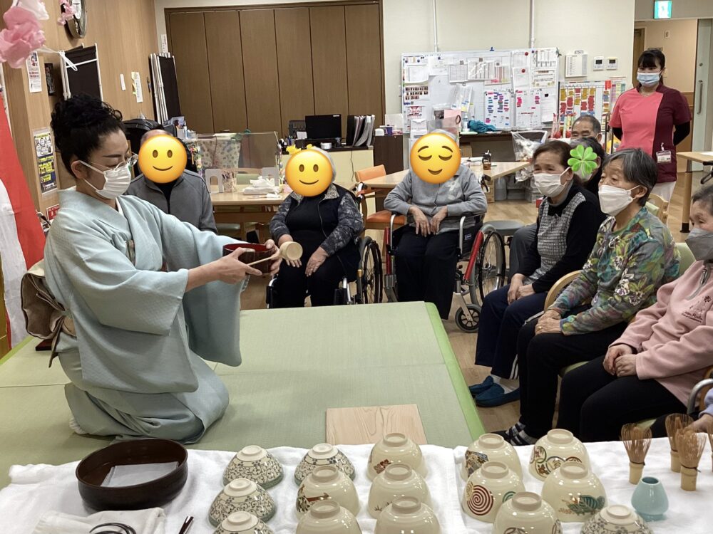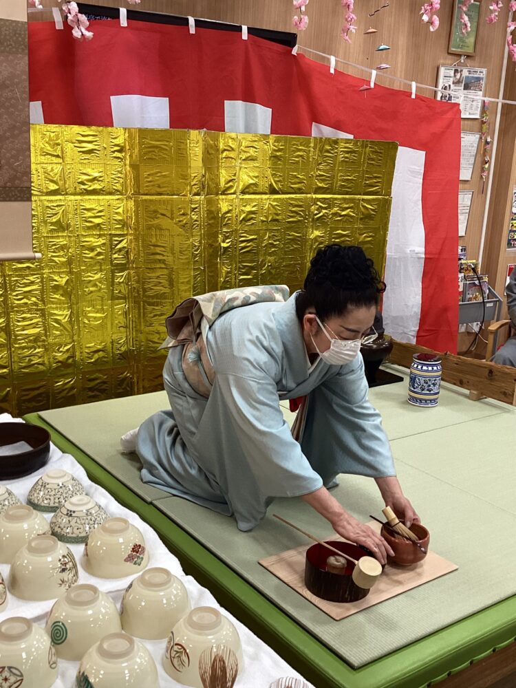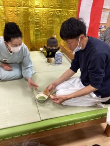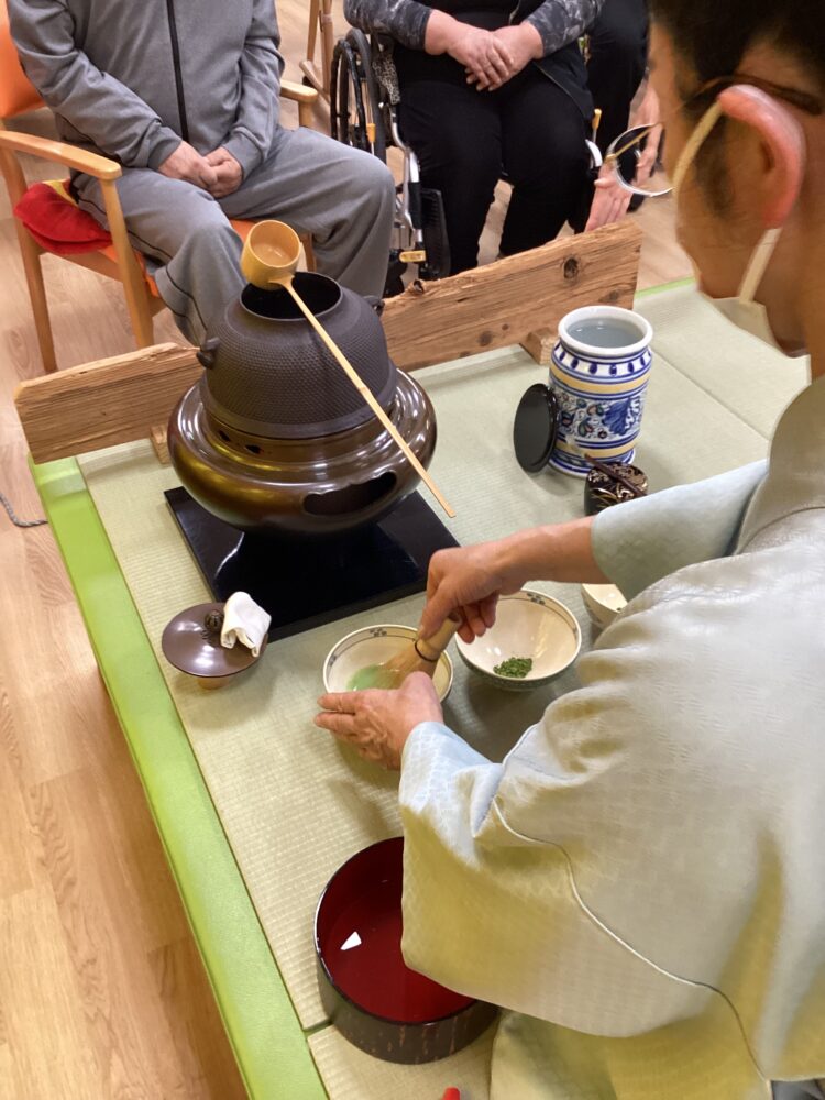 お茶会の終盤には職員がお茶立てにチャレンジ!